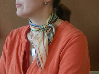 Very cool necklace! You definitely wear it well, esp with the scarf. xo