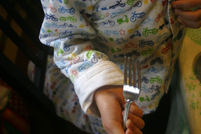 Great work on the clothes. I like the bicycle fabric. Cute, cute. I'm all about novel boy things now. ;-)