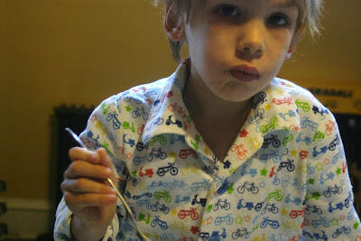 I think I'm finally about to give in and actually follow a pattern. I have SUCH a hard time sewing boys clothes without one, but I always think I can "wing it". Every single thing I've started sewing for my boys ends up being too girlie and gets given to my friend's little girl. I love Ben's pajamas and he's so cute, picking out those buttons. They're perfect.