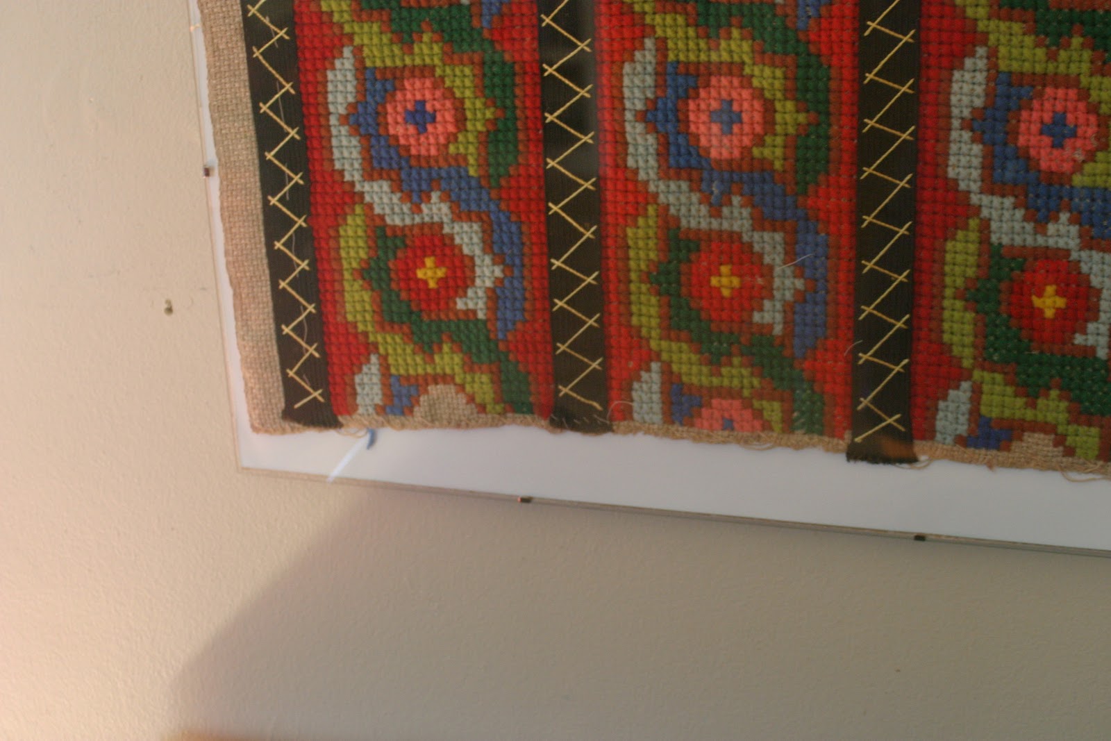 After about two years of closing the drawer wistfully on the tapestry, I bargained with my husband: he could hang his three Roman soldiers and I could hang my tapestry. Both of us tolerate the other's picture. But at least mine is cheap! I got the frame with a coupon at AC Moore for something under $5 - I think the frame gives it an elegant, minimalist edge.