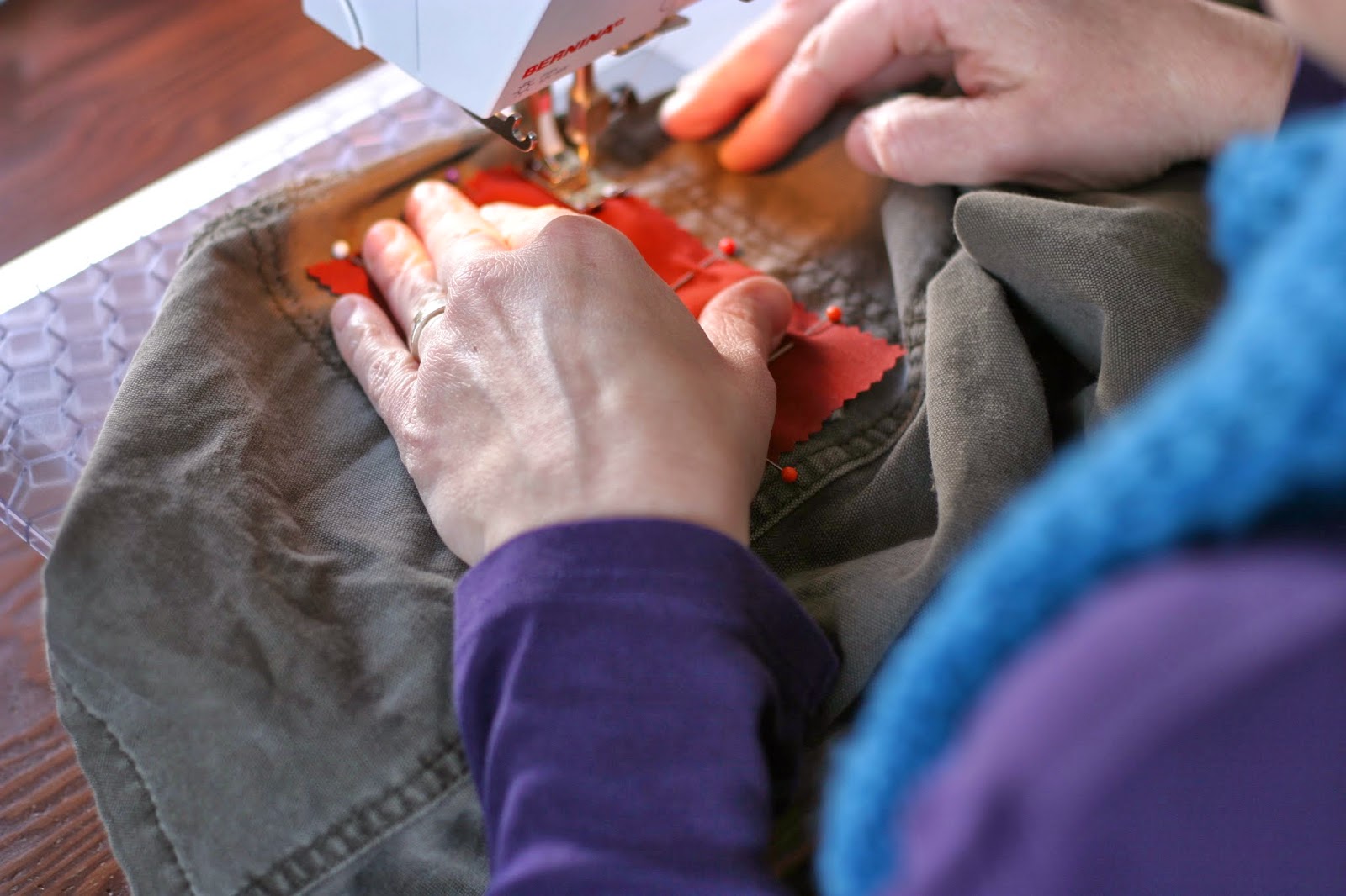 Thank you so much for sharing this. I love seeing how others fix things! I do mine in a similar way, except I don't reinforce the hole first, I just put a huge patch over it and sew it into the side seam when I'm done. I usually patch the opposite knee too even if it hasn't worn through yet, because I know it will soon!